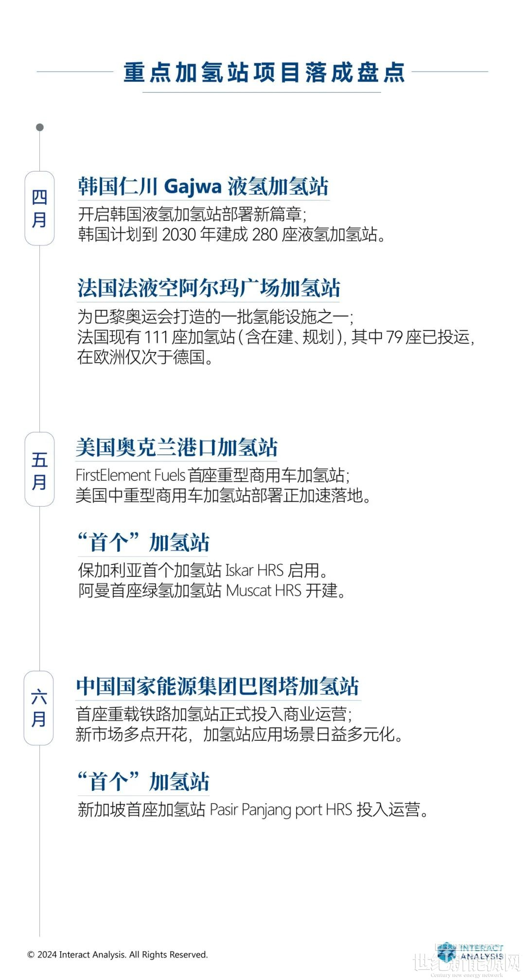 多国 “首个”加氢站:5月,保加利亚首个加氢站(Iskar HRS)正式启用,阿曼首座绿氢加氢站(Muscat HRS)开始建设;6月,新加坡首座加氢站(Pasir Panjang port HRS)投入运营。