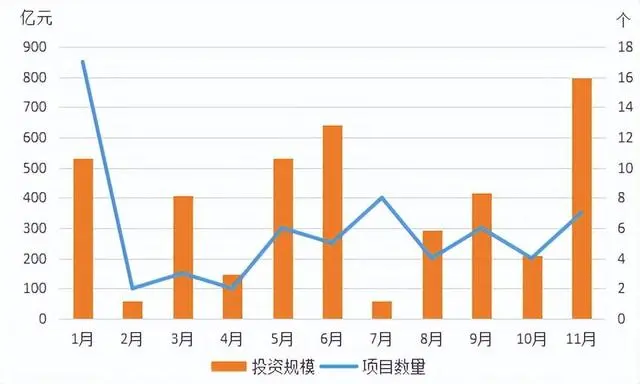 2023年1月至11月我国绿氢项目投资分布 从项目下游应用来看,绿氢合成氨以及绿氢制甲醇仍是绿氢项目的主要消纳途径。 2023年1月至11月,我国新增绿氢合成氨项目数量和规划投资分别为27个和1885.8亿元,占全国新增绿氢项目数量和规划投资规模的40.6%和46.0%,项目全部投产后可新增绿氨产能约485万吨/年。 新增绿氢制甲醇项目数量和规划投资分别为20个和1754.2亿元,占全国新增绿氢项目数量和规划投资规模的29.0%和42.8%,项目全部投产后可新增绿色甲醇产能约865万吨/年。 未披露具体应用领域及燃料电池汽车、冶金、供能等其他应用领域的项目数量为22个,规划投资金额为1019.6亿元(赤峰市风光氢醇一体化及氢能配套产业项目等项目为多领域综合应用项目,本文按不同应用领域分别统计)。 受终端需求旺盛和能源贸易转型影响,我国绿氨和绿色甲醇项目在2023年呈现数量多、规模大的发展特征。