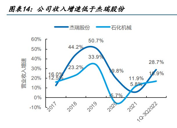 2.2 公司国企改革推进初显成效,对标优秀民企可比公司,未来公司国企改革重点考核财 务指标有望继续优化 以“双百行动”为契机,公司制定了人事制度、劳动制度、分配制度三项制度改革实施方案。 从结果看,公司员工人数精简,人均创收持续提升。公司通过建立劳效指标用工管控机制, 推行工序外包、弹性用工服务生产保供,近年生产人员数量持续精简,带动员工总人数下降。21年公司人均创收134.9万元,同比增长13.16%,16至21年复合增速19.35%。 我们选取国内民营油服设备龙头杰瑞股份作为公司可比公司,公司收入增速整体低于杰瑞股份,同时毛利率与杰瑞股份相比有较大改善空间。针对新一轮国企改革重点考核的“四 提升”,公司与杰瑞股份相比在营业现金比率、研发费用率指标较为接近,但在ROE、劳动生产率指标上仍有较大提升空间,后续有望持续改善。