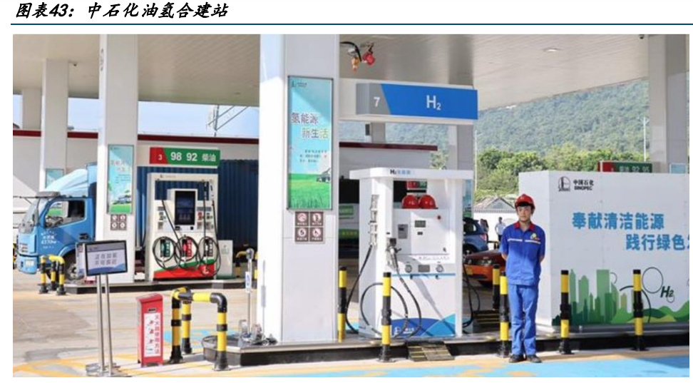 根据国家能源局数据,22年中国页岩油产量突破300万吨,是18年产量的3.8倍,鄂尔多斯盆地庆城、准噶尔盆地吉木萨尔建成百万吨级页岩油产区,大庆古龙、胜利济阳不断扩大页岩油建产规模。目前长庆油田、大庆油田、胜利油田已发布的2025年产量规划分别为300/100/100万吨,我们预测2025年中国页岩油产量将达到700万吨,2021至2025CAGR30.68%。 未来伴随页岩气、页岩油开采力度加大,有望持续释放钻完井设备需求。同时相比柴油驱动,电驱设备更加顺应节能增效需求,渗透率有望持续提升,带来一部分增量设备需求。 4.氢能:中石化打造氢能龙头,公司深度受益 4.1 中石化目标打造中国第一氢能公司,推进制氢、加氢站项目建设 中石化目前业务布局覆盖了氢气制备、储存、运输和销售等氢能相关业务及服务,打造“油 气氢电服”综合能源服务商。 中石化目标打造国内第一氢能公司,有望在25年建成保底600座,力争1000座加氢站。 21年3月,根据中石化公告“2020 年可持续发展报告”信息,中石化规划布局1000座 加氢站或油氢合建站。根据公司23年1月公告信息,截至22年底中石化已在全国建成98座加氢站,预计到2025年将建成保底600座,力争1000座加氢站,总加注能力12万吨/年的加氢站网络22年9月,中石化发布氢能中长期发展战略,在现有炼化、煤化工制氢基础上,大力发展可再生电力制氢,进一步扩大清洁绿色氢气生产利用规模,逐步在炼化领域替代化石原料制氢,推动工业领域深度脱碳;积极联合优势资源,推动建立产业链数据库和信息共享机制,为氢能产业发展提供数据支撑。 4.2 中石化600至1000座加氢站规划后续潜在设备投资额有望达到57.19至85.69亿元 加氢站包含撬装加氢站、固定式加氢子站、站外管道加氢母站、制氢加氢一体站:1)撬装加氢站:可快速完成建设并在短期投入运营撬装加氢站通过氢气长管拖车将压力不大于20Mpa的压缩氢气运送进加氢站,通过卸气柱卸气至撬装压缩加氢装置,后增压为燃料电池车辆进行加注(含固定储氢装置则先存入储氢装置内)。