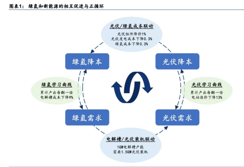 氢能的2.0时代到来发表时间:2024-05-06 10:24 绿氢进入 2.0 时代,需求有望多维度展开氢不仅是能源,也是能源的载体和基础原料,可广泛运用于化工,工业,交运,建筑和发电等领域。由于氢发生反应后只产生水,且重量能量密度极高,因此一直被认为是实现零碳排放的重要能源和能源转型重要方向。党的二十大报告提出要加快规划建设“新型能源 体系”,因此对于中国未来的能源发展方向,不仅要以新能源为主体建立新型电力体系,对于电力无法解决的能源问题,需要通过绿氢来解决。根据 IEA 统计,2022 年全球氢的需求量在 9500 万吨,其中我国有 4000 万吨,是最大的氢生产和消费国。虽然过去氢的总需求量较大,但是主要以化石能源生产的灰氢存在,绿氢占比很小,而且大多数生产采用长流程工艺,氢的生产和需求在系统闭环内匹配,没有对外的需求,因此绿氢不仅面临经济性平价难度,也面临实际产业发展中缺乏需求的问题。过去市场对于氢的认识主要在车用燃料电池以及能源发电领域,限制了氢的发展范围和规模,随着氢产业发展的深入,我们看到绿氢本身不仅在化工,冶金和电力领域出现更多应用,绿氢的衍生产品如绿色甲醇,绿氨也在交运,化工等领域出现更多场景。今年 2 月 29 日,工信部等 7 部门发布的《加快推动制造业绿色化发展的指导意见》提出:“围绕石化化工,钢铁,交通,储能,发电等领域用氢需求”“构建氢能技术体系”,极大的拓宽了氢发展方向,我们认为氢发展进入 2.0 时代。本篇报告从需求入手,分析需求如何推动产业化降本实现平价之路。 与此同时新能源的持续降本更进一步增加绿氢平价的可能性,风机和组件价格在 2023 年年底已分别降至 2 元/瓦和 1 元/瓦以下,风电光伏发电成本均较 2022 年下降了约 30%。而绿氢一方面水解制氢的主要成本是电,另一方面可以接受间歇性电源,因此可以更大限度的使用可再生能源;随着电力市场化的推进,以及新能源逐步进入市场,绿氢也为可再生能源发电消纳提供保证,两者可以实现较强的正循环、互相促进。可以说没有新能源的低成本,也很难实现氢的大规模应用,而绿氢未来的大规模应用,也将打开可再生能源的需求瓶颈。我们预测到 2030/35 年全球绿氢的需求有望达到 1290/5900 万吨,若全部由光伏电力满足则有望带动新增光伏 101/356GW 每年的装机需求。