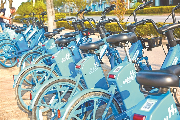 上海市路边供市民骑行的氢能自行车。 图片来源:视觉中国