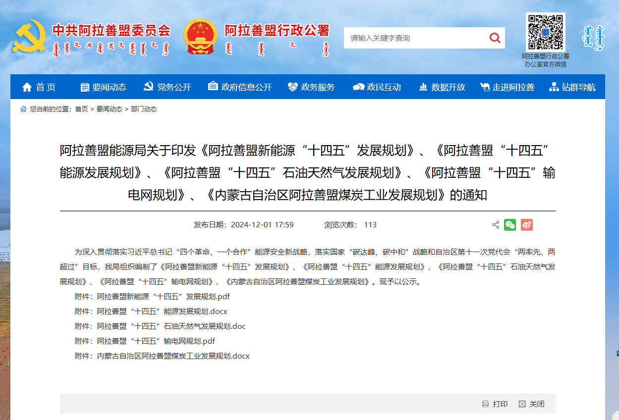 阿拉善“十四五”重点扶持氢能:部分免除电解装置的过网费、税费等!发表时间:2024-12-04 09:59 12月1日,内蒙古阿拉善盟能源局发布关于印发《阿拉善盟新能源“十四五”发展规划》、《阿拉善盟“十四五”能源发展规划》等的通知。