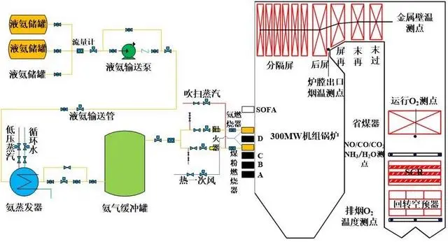 300兆瓦燃火电站锅炉掺氨燃烧系统示意图