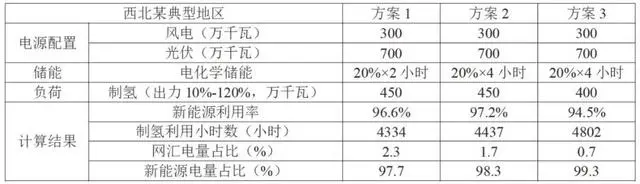 解决可再生能源电力消纳绿色氢基能源是可再生能源的能量载体,具备“过程性能源”与“含能体能源”双重属性,可以应用在诸多领域。可再生能源结合电解槽技术,作为具备灵活调节能力的可调负荷响应,能够实现可再生能源发电的充分消纳。通过构建“电-氢”耦合体系不仅有助于电力系统的稳定,也能实现绿色能源以氢的形式向氨、醇等领域拓展,实现可再生能源非电消纳。 在构建新型电力系统的新形势下,大规模、高比例、市场化、高质量成为可再生能源发展的新特征新要求。氢基能源与可再生能源进行耦合,通过规模化、一体化开发实现优势互补,可以有效解决可再生能源的波动性和不稳定性问题,提高可再生能源消纳能力,是新时期可再生能源高质量跃升发展的重要路径。 在当前“沙戈荒”背景下,新能源大基地面临的主要挑战就是如何高效消纳产生的电能,提高新能源利用率。在西北地区,某典型的风光氢输一体化基地,为我们提供了一个代表性的可行案例。西北地区拥有丰富的风能和太阳能资源,具有巨大的新能源开发潜力,然而面临着区域本地电网构架不强、用电负荷不足的困境,直接影响新能源规模化开发利用。 (1)方案设想 我们以一个千万千瓦基地为例进行分析论述,其组成包括300万千瓦的风电、700万千瓦的光伏,以及配套适当规模的储能。同时考虑采用了电解水制氢作为柔性负荷来解决波动性电源的消纳问题。通过配置不同规模的储能和制氢负荷进行对比分析,主要计算成果如下。 西北某典型地区电源配置表