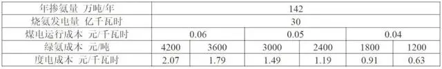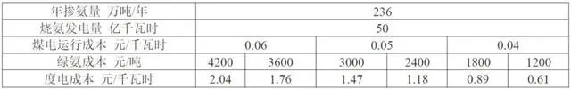 煤电烧氨经济性评估(年利用小时数3000小时)